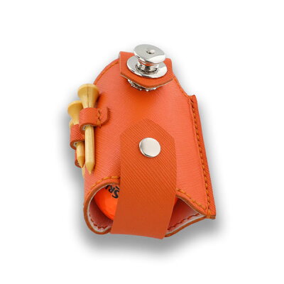 豊富なカラーオーダーが魅力!!【 本革製ゴルフボールポーチ・ドイツホック式キーホルダー 】(GRレザー)革/オレンジ・裏革/ホワイト・ステッチ/オレンジ ・金具/シルバーボール2個ティー3本収納ボールポーチ /ゴルフポーチ