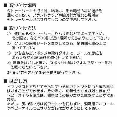 シールタイプのフェイクタトゥーですが、なかなかリアルなプリントです。