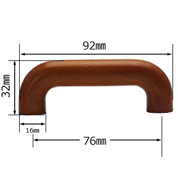 家具金物から棚、キッチン扉のDIYに 色:ダークブラウン 見た目の横幅サイズ:92mm 高さ:32mm ビスピッチサイズ:76mm 材質:パイン・天然木 仕上げ:ニス仕上げ 付属ビス:トラスM4×25mm(2本入) 適合扉厚:12〜21mm