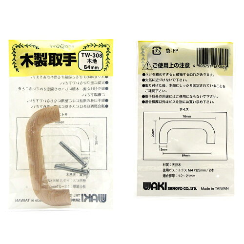 WAKI 木製取手 木地 ビスピッチ64mm TW-308 4903757163089
